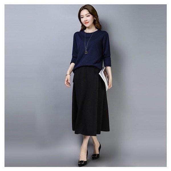 セットアップ レディース スカートスーツ Kl 春 上下セット チュニック ブラウス フレアスカート 無地 ゆったり 体型カバー 着痩 激安本物